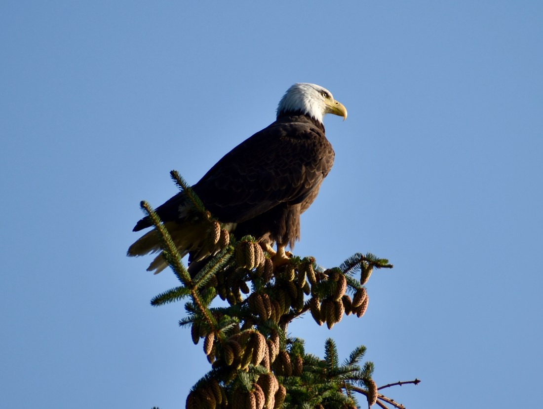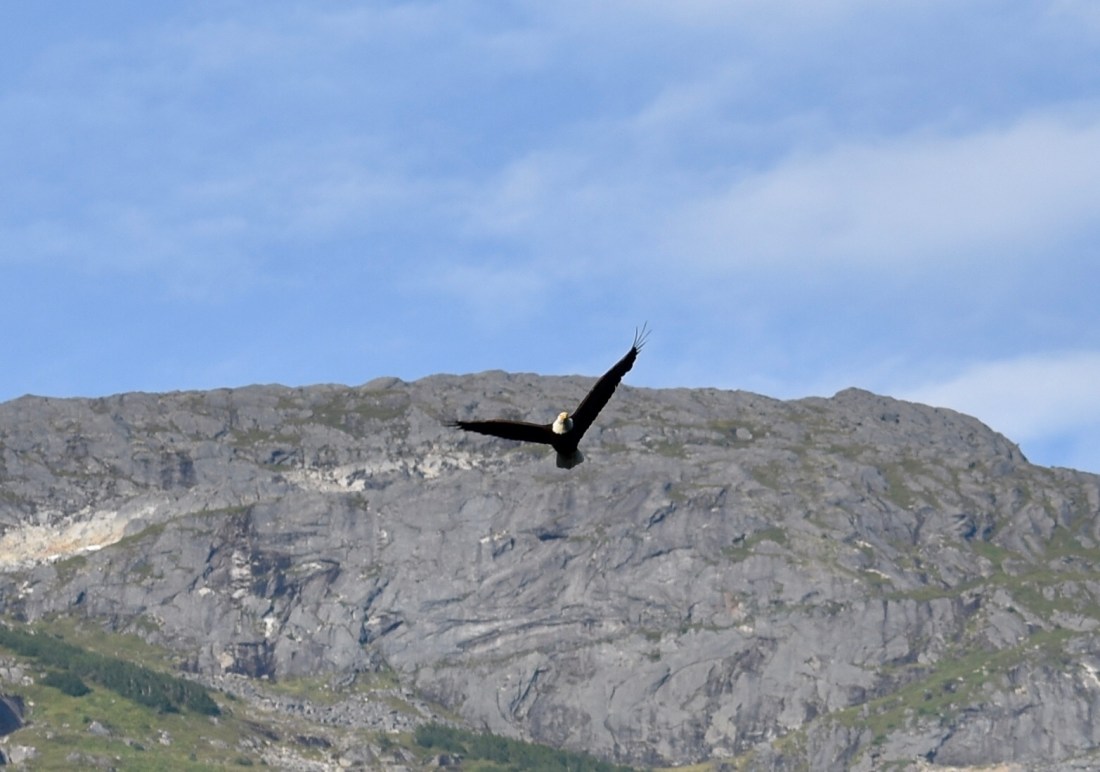The road from Haines Junction YT to Haines Alaska has been the best quality road we have had in a loooong time! The mountains along the road are very much like the eastern side of the Sierra Nevadas with a few glaciers thrown in for good measure. The skys are still very hazy not sure if it is still from the fires or if is smoggy. We came to see the Eagles and we have seen enough although we have not seen them swarming. Dave fished one day but to no avail evidently this is the time for Sockeye Salmon to run but the commercial fishermen up here use drag nets so pretty much block them from swimming upstream , but he still had fun. This is a a quaint town kind of lost in the 60’s. A lot of self healing ,yoga and meditation along with some marijuana brownies throw in:-). It could really use a good cafe for lunch.